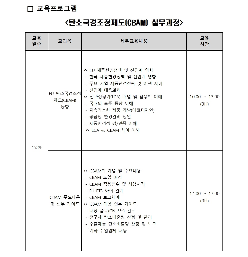 (사)한국환경컨설팅협회는 2011년부터 기업 재직자를 대상으로 환경교육을 실시하고 있습니다. 환경컨설팅 및 환경 산업체 담당자의 실무능력을 향상시키기 위한 목적으로 기후변화대응 최근 환경이슈 및 정책을 반영한 심도깊은 교육을 실시하오니, 교육에 많은 참여를 바랍니다.